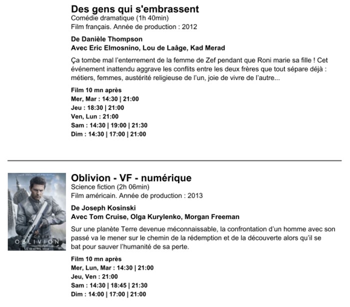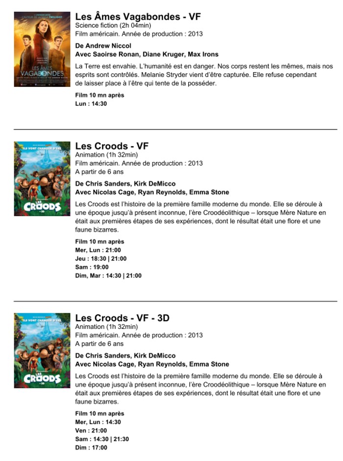 A l'affiche, cette semaine (du 10 au 16 avril 2013)