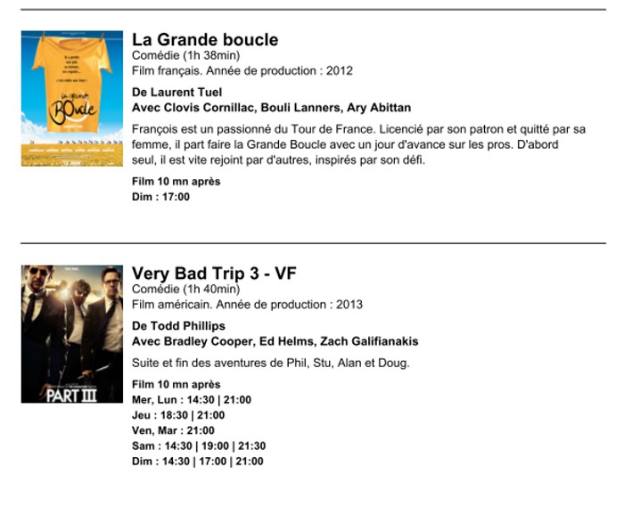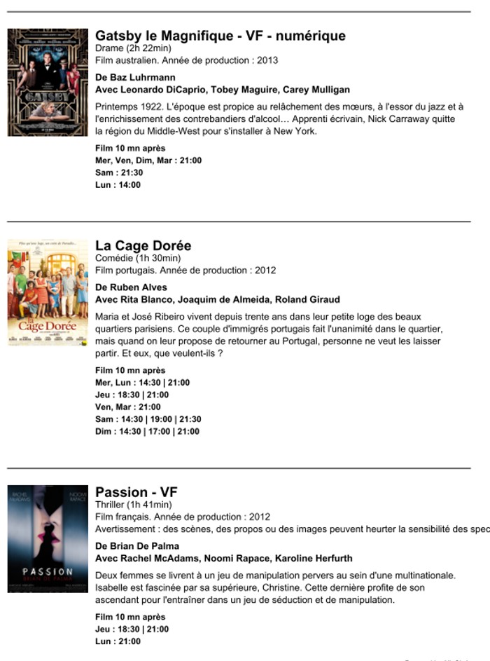 A l'affiche, cette semaine (du 29 mai au 4 juin 2013)