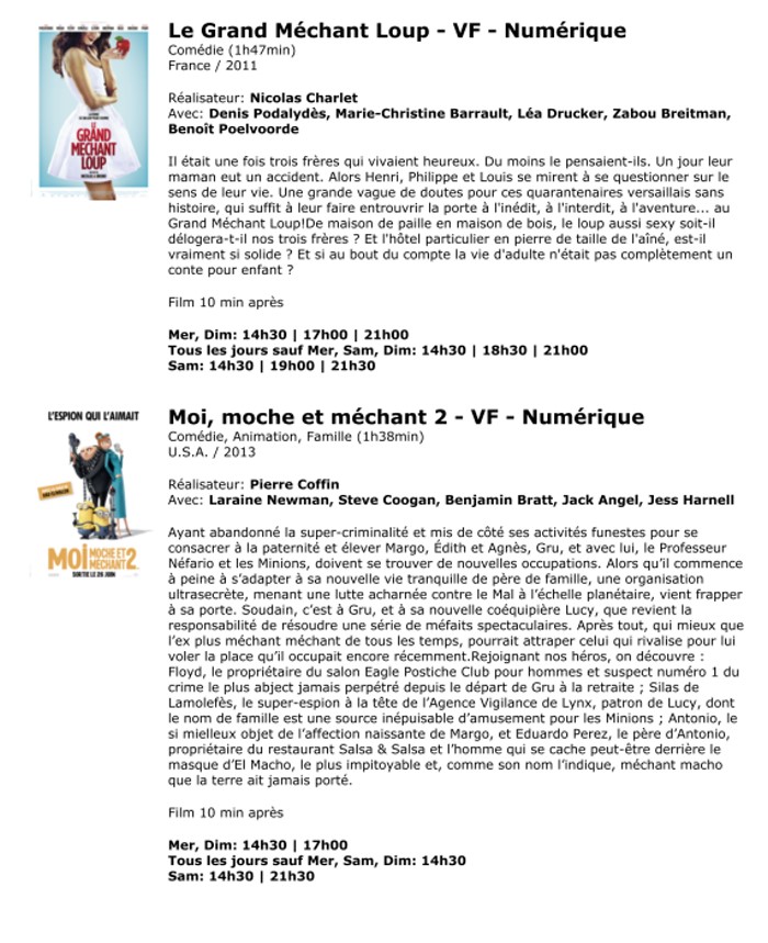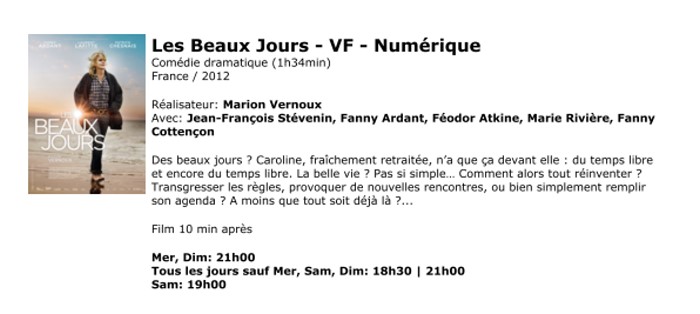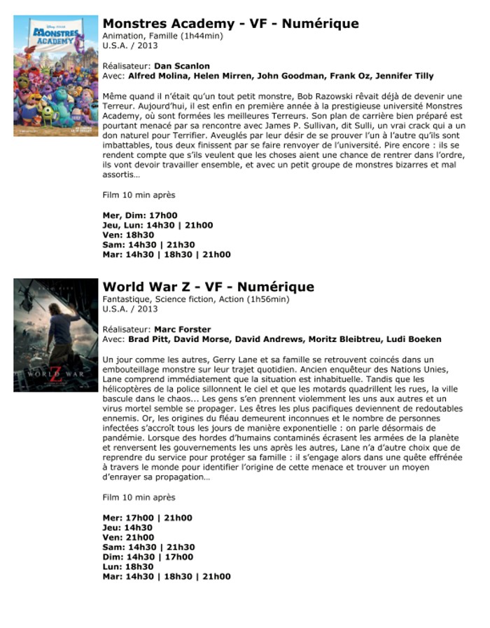 A l'affiche, cette semaine (du 10 au 16 juillet 2013)