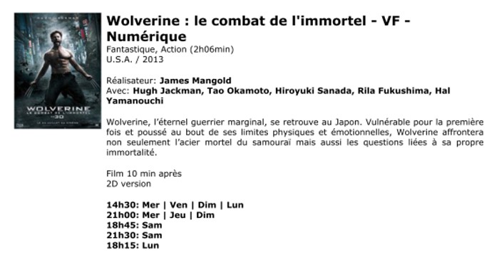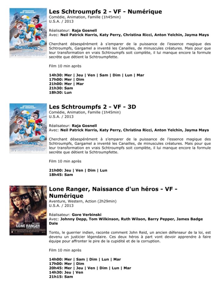 A l'affiche, cette semaine (du 07 au 13 août 2013)