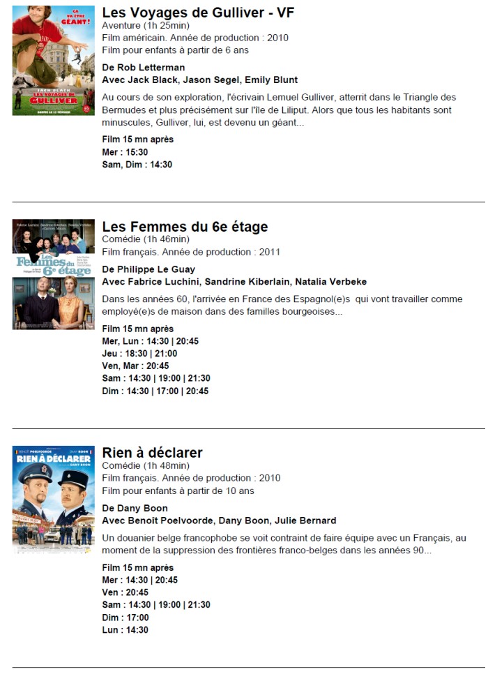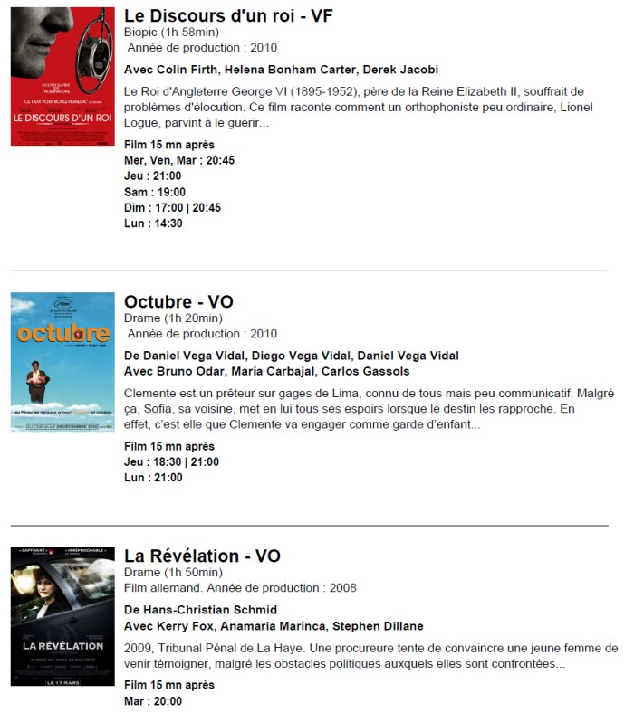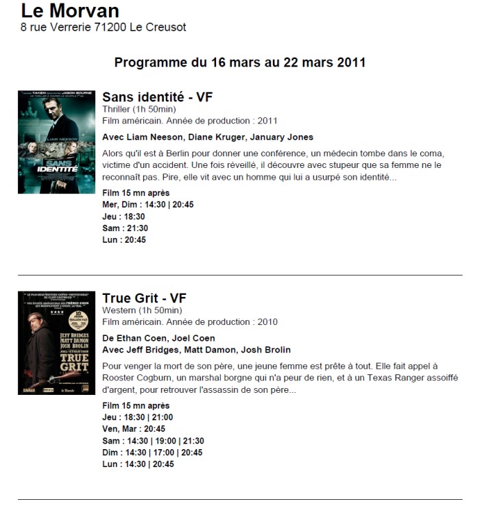 A l'affiche, cette semaine (16 au 22 mars 2011)