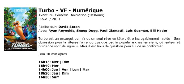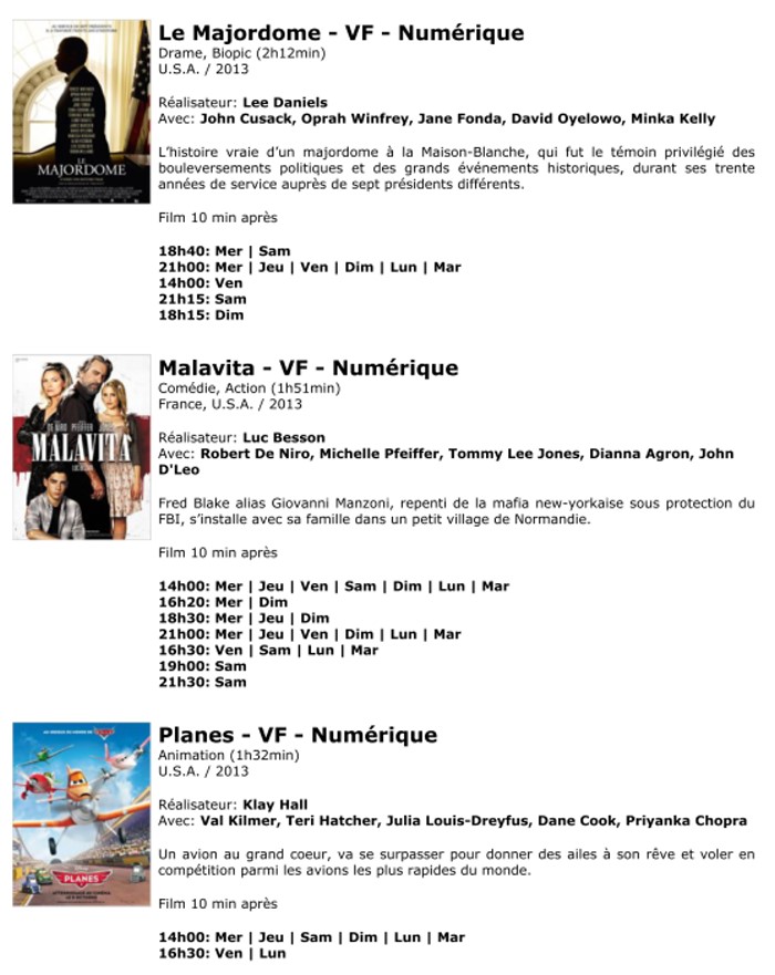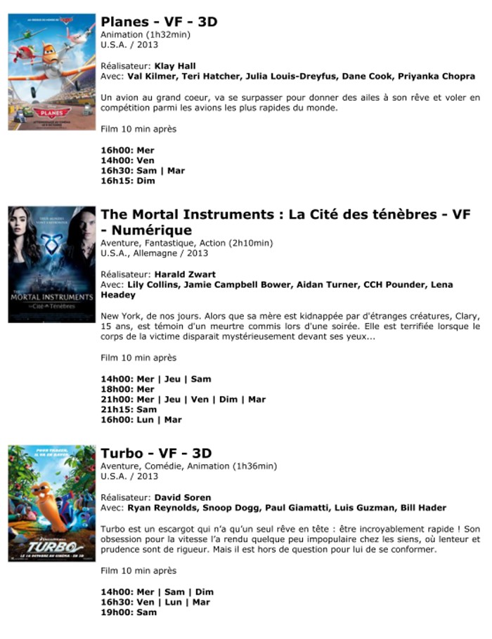 A l'affiche, cette semaine (du 23 au 29 octobre 2013)
