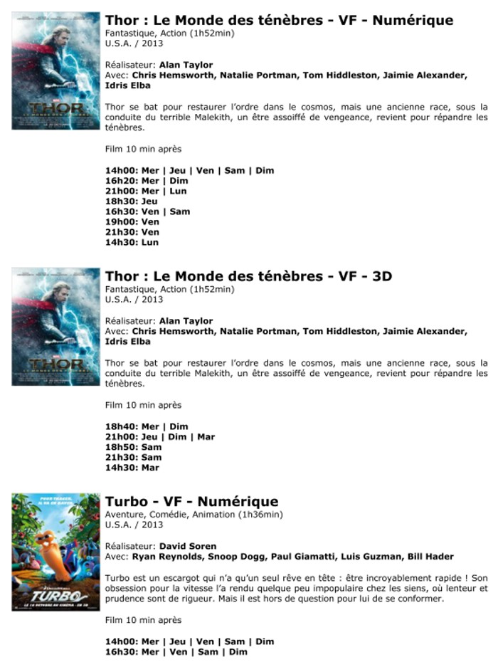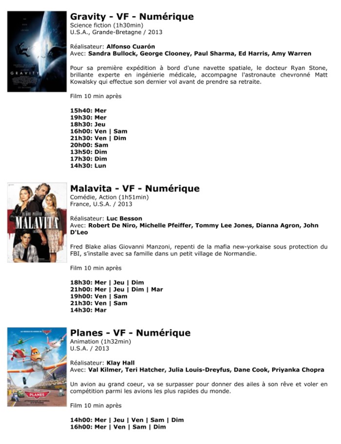 A l'affiche, cette semaine (du 30 octobre au 5 novembre 2013)
