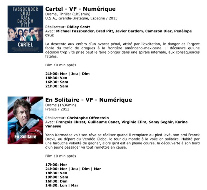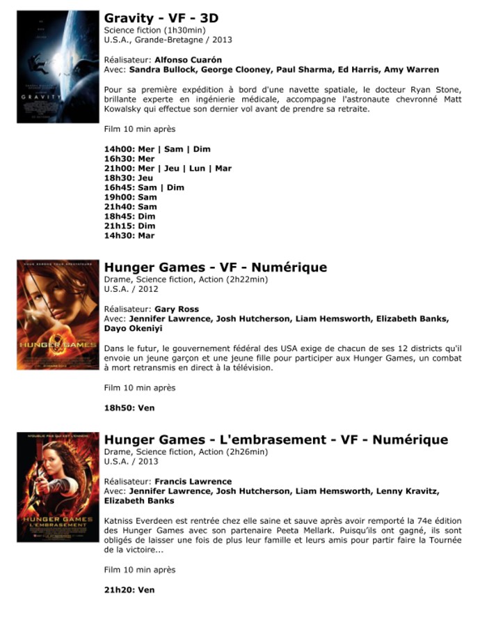 A l'affiche, cette semaine (du 20 au 26 novembre 2013)