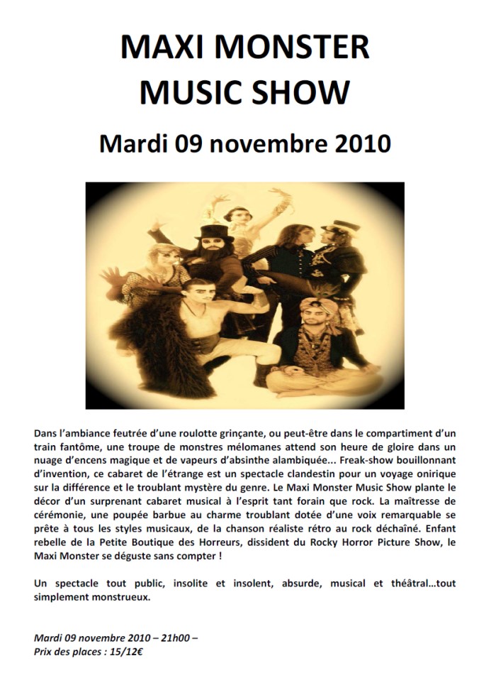 Maxi Monster Music Show ce mardi 9 novembre 2010