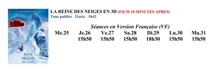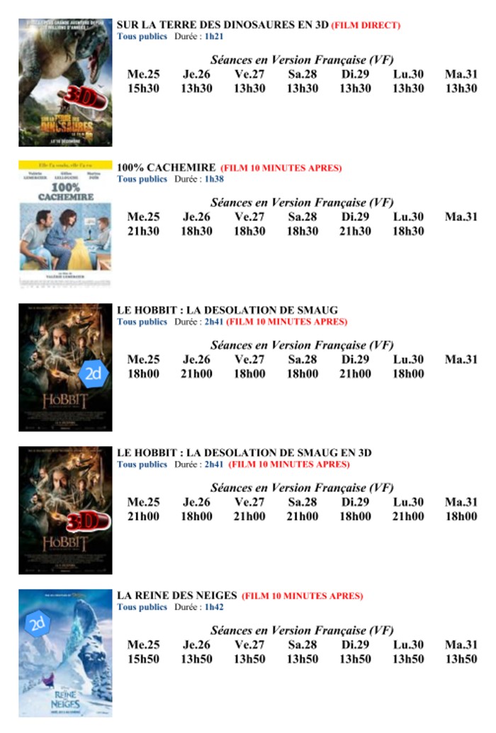A l'affiche, cette semaine (du 25 au 31 décembre 2013)