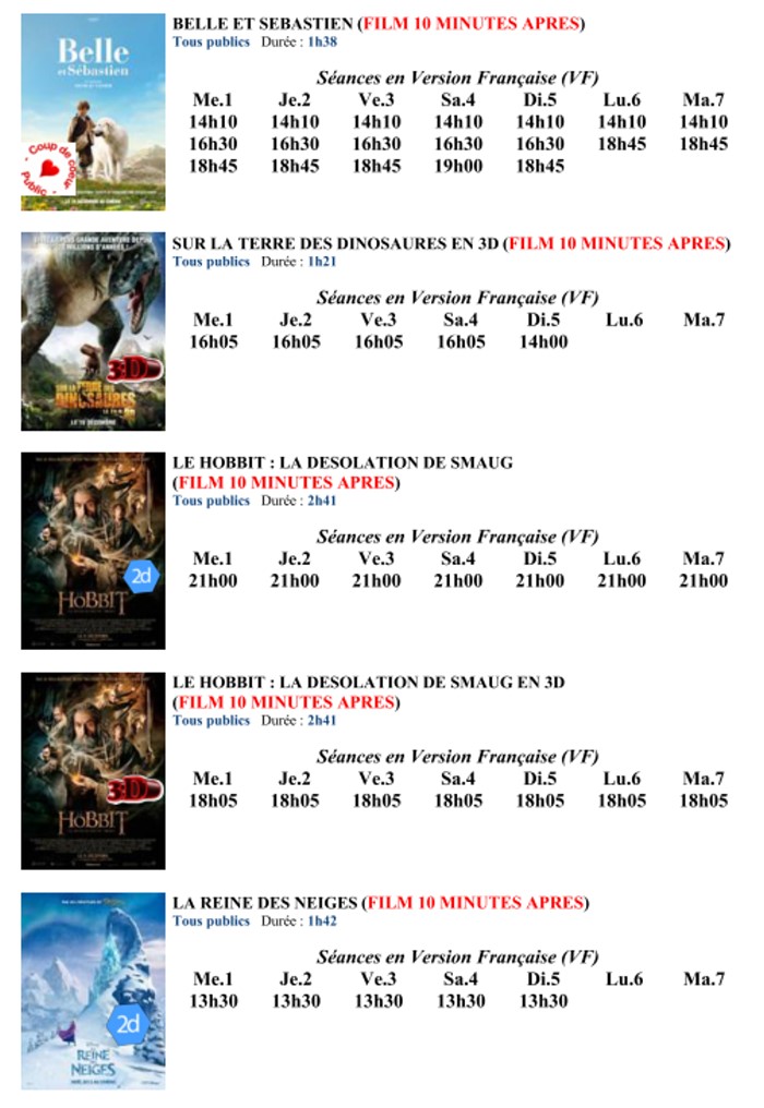 A l'affiche, cette semaine (du 1er au 7 janvier 2014)