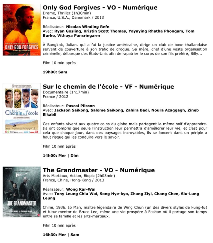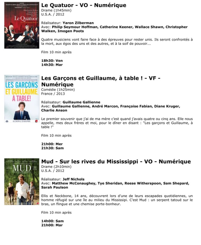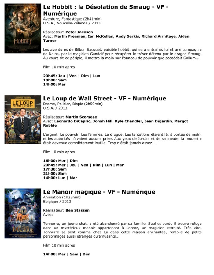 A l'affiche, cette semaine (du 8 au 14 janvier 2014)