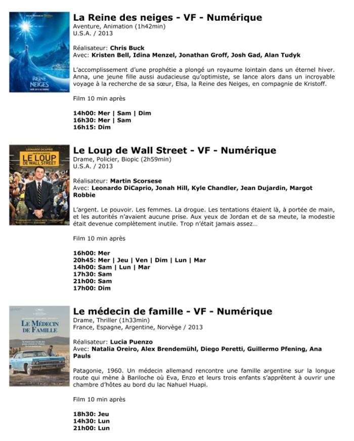 A l'affiche, cette semaine (du 22 au 28 janvier 2014)