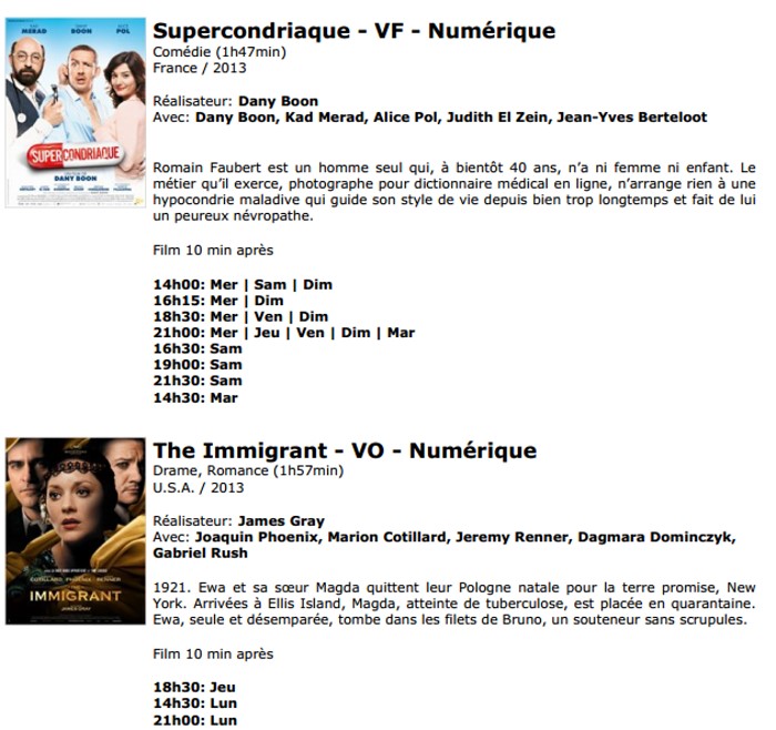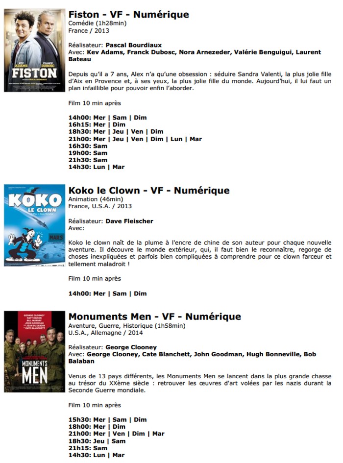 A l'affiche, cette semaine (du 19 au 25 mars 2014)