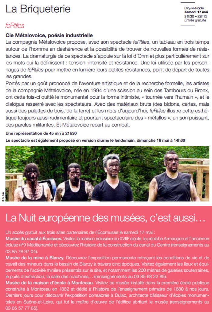 L’Écomusée Creusot Montceau est constitué de deux sites : le Musée de l’homme et de l’industrie au Creusot et la Briqueterie à Ciry-le-Noble.