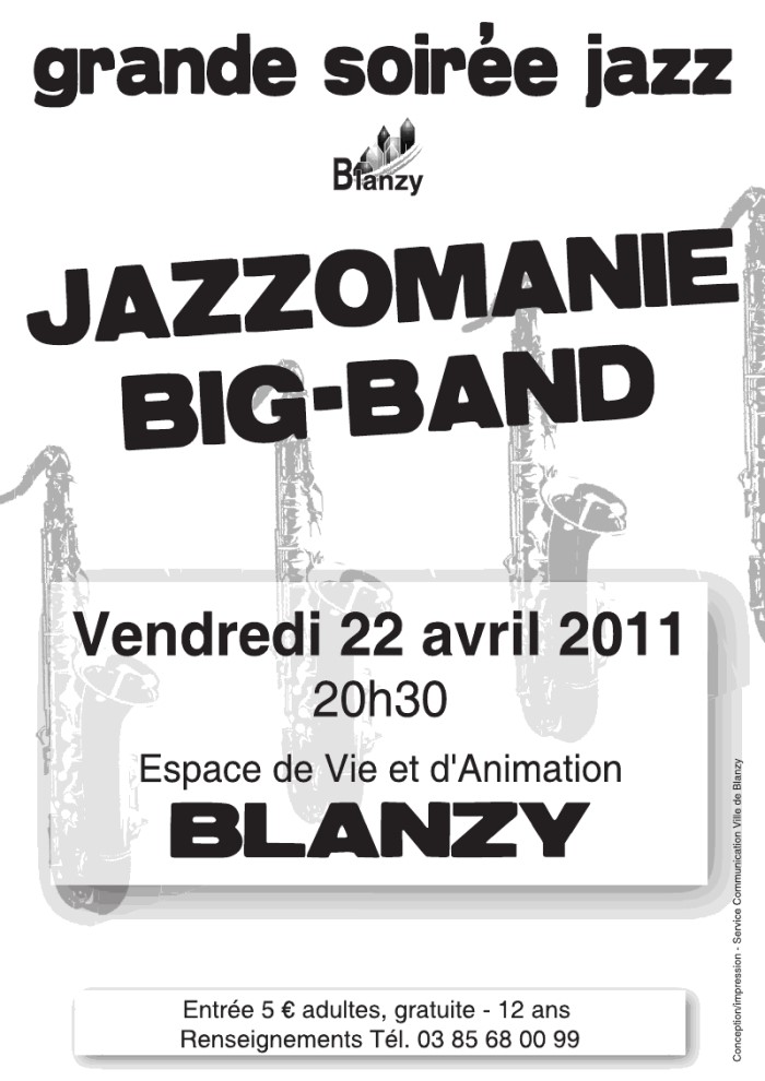 Grande soirée Jazz avec le Jazzomanie Big-band organisé par la Ville de Blanzy