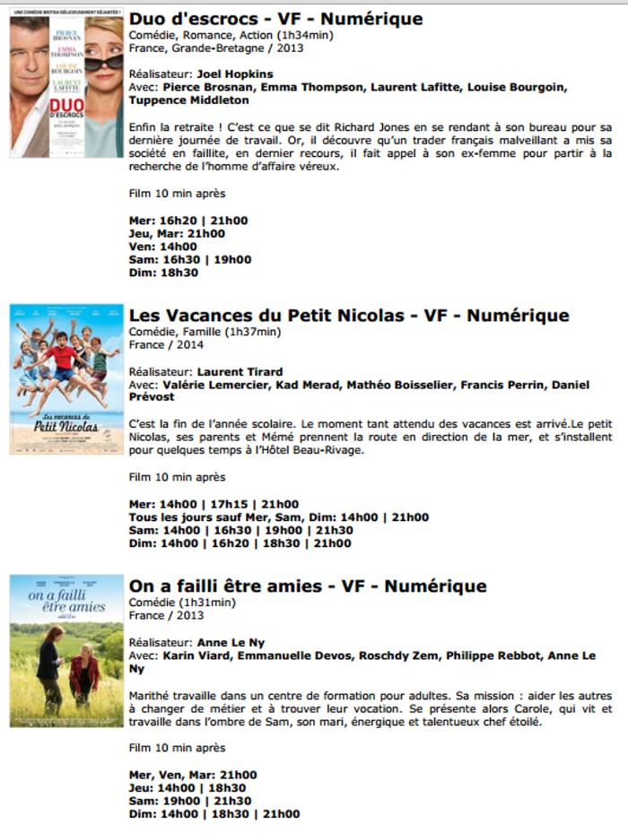 A l'affiche, cette semaine (du 16 au 22 juillet 2014)