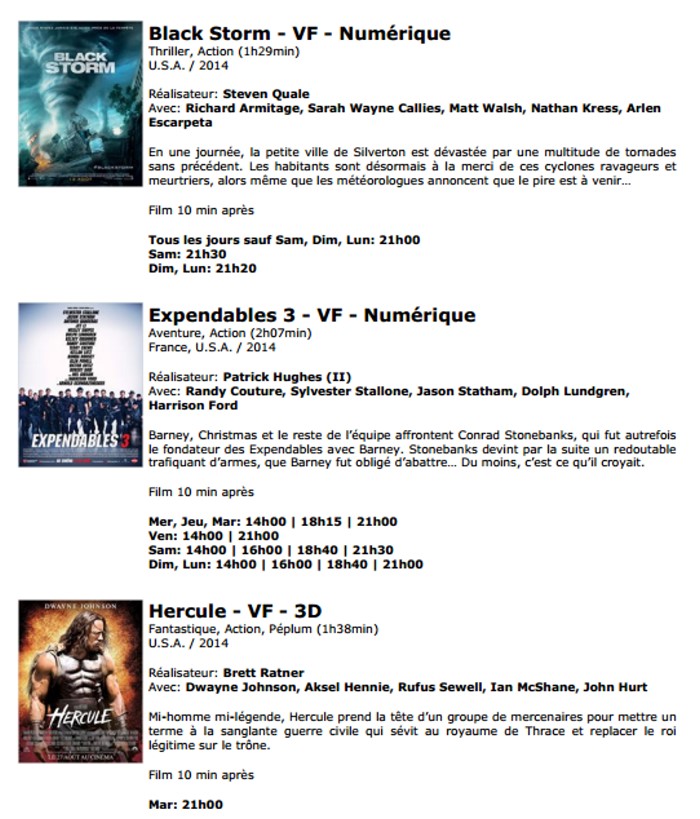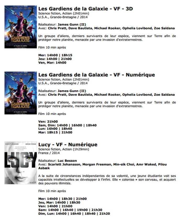 A l'affiche, cette semaine (du 20 au 26 août 2014)