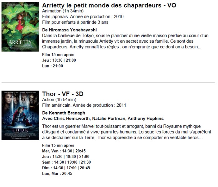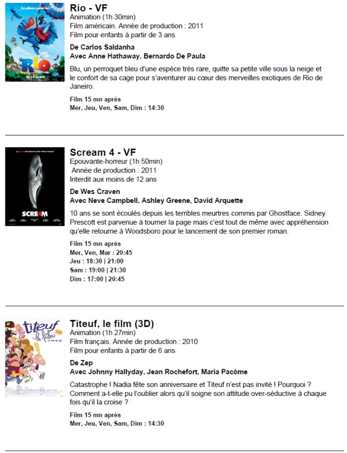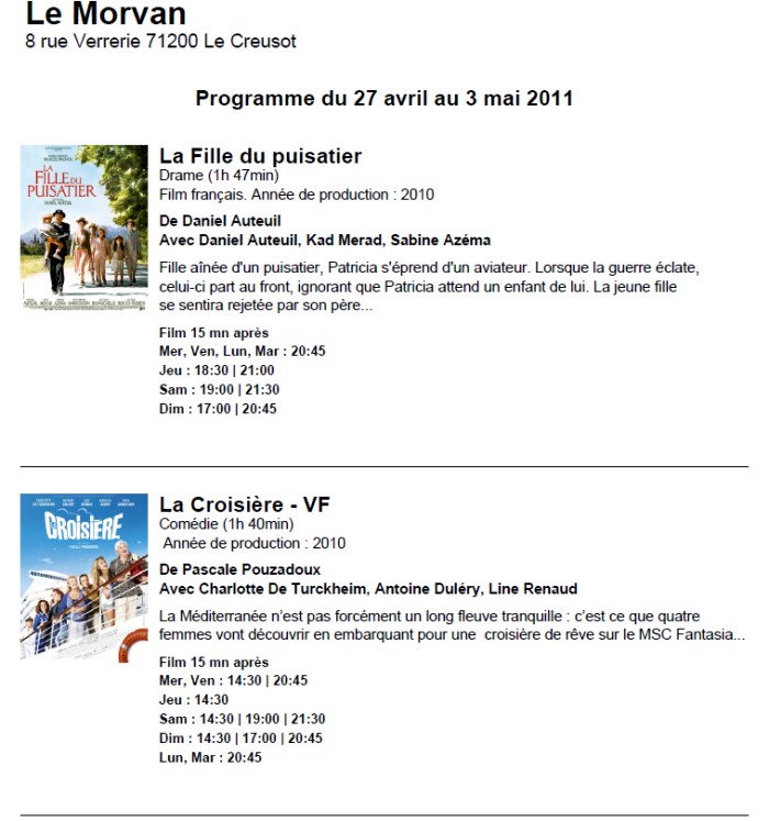 A l'affiche, cette semaine (27 avril au 3 mai 2011)