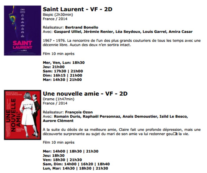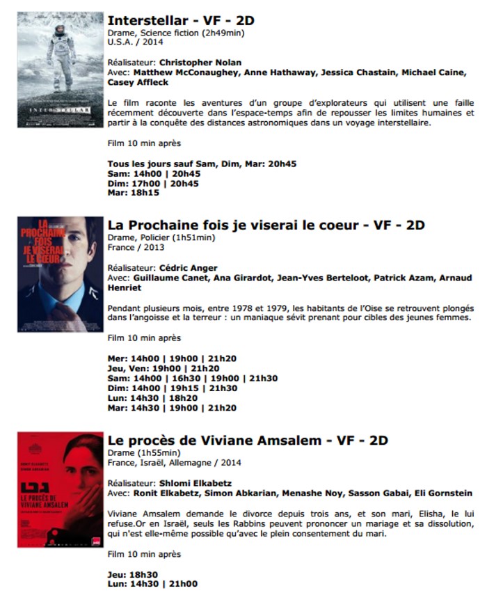 A l'affiche, cette semaine (du 19 au 25 novembre 2014)