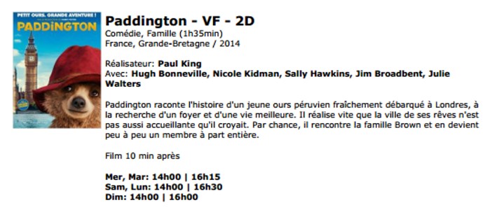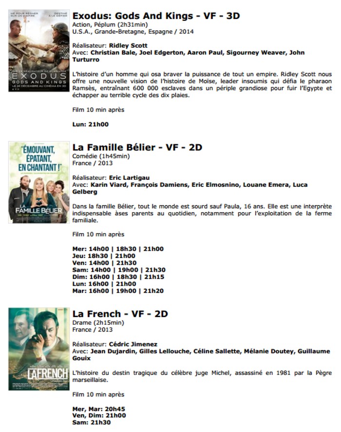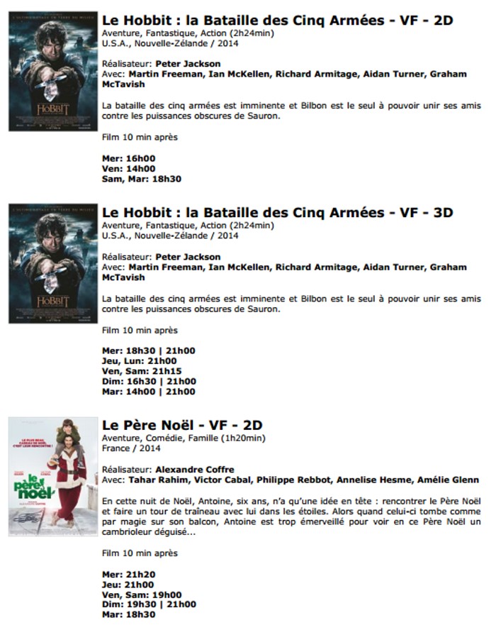 A l'affiche, cette semaine (du 17 au 23 décembre 2014)