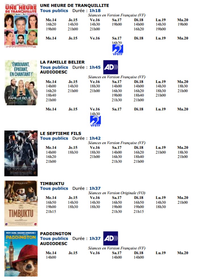 A l'affiche, cette semaine (du 14 au 20 janvier 2015)