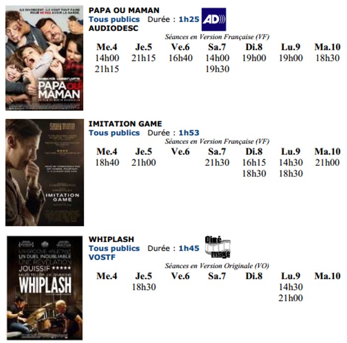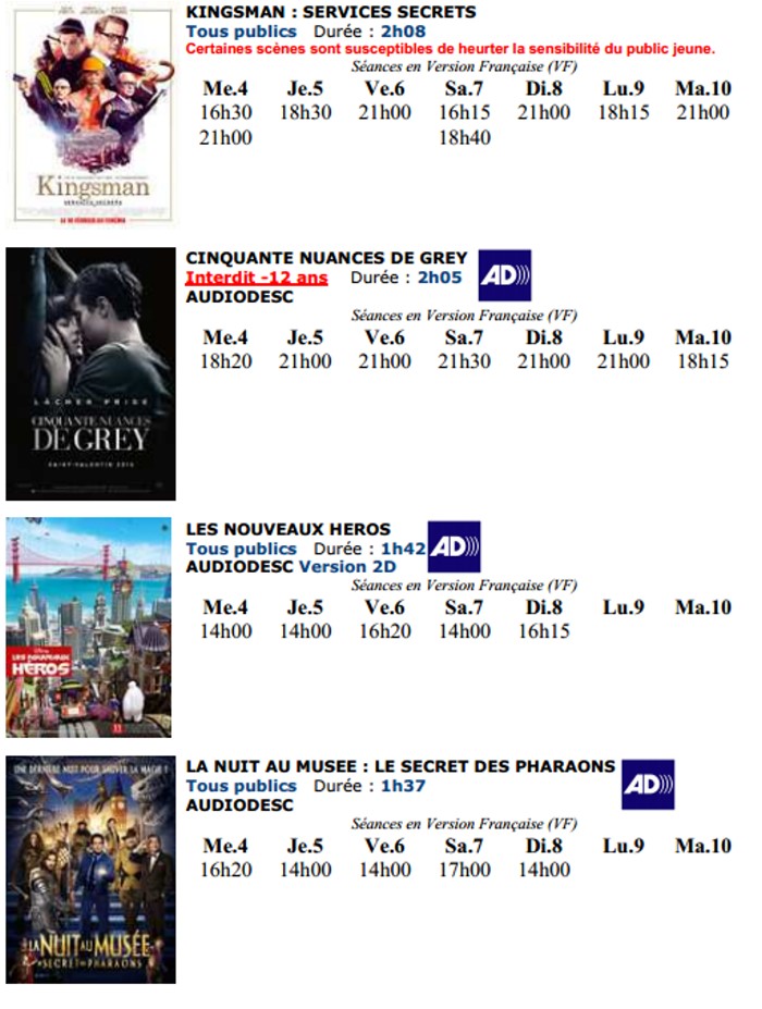 A l'affiche, cette semaine (du 4 au 10 mars 2015)