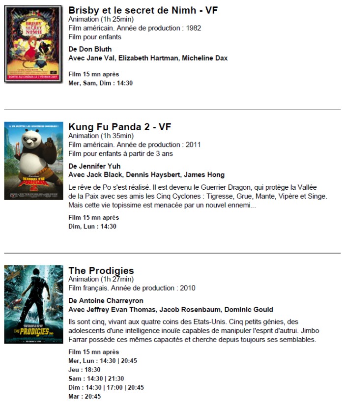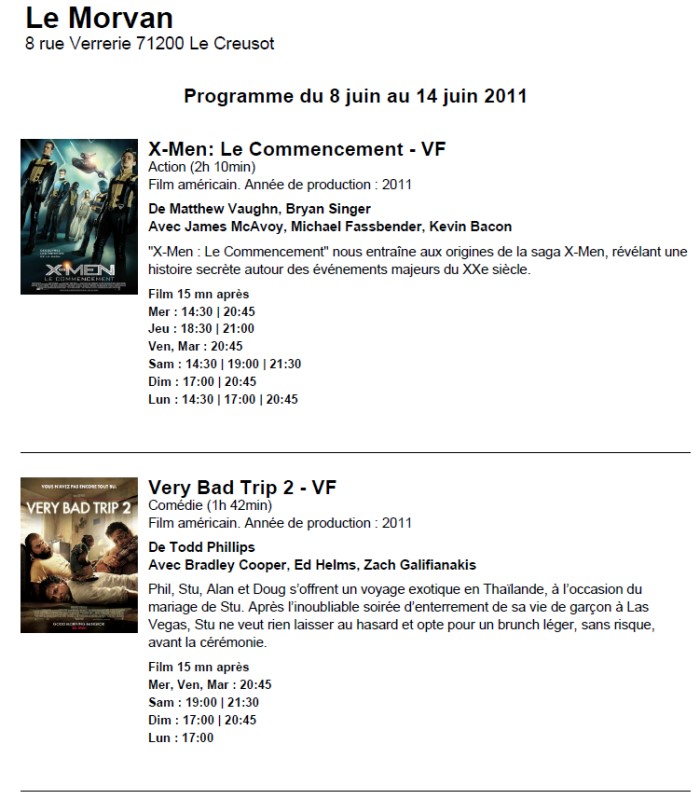 A l'affiche, cette semaine (du 8 au 14juin 2011)
