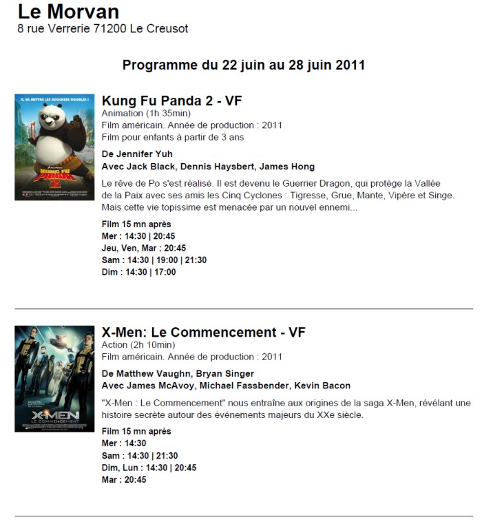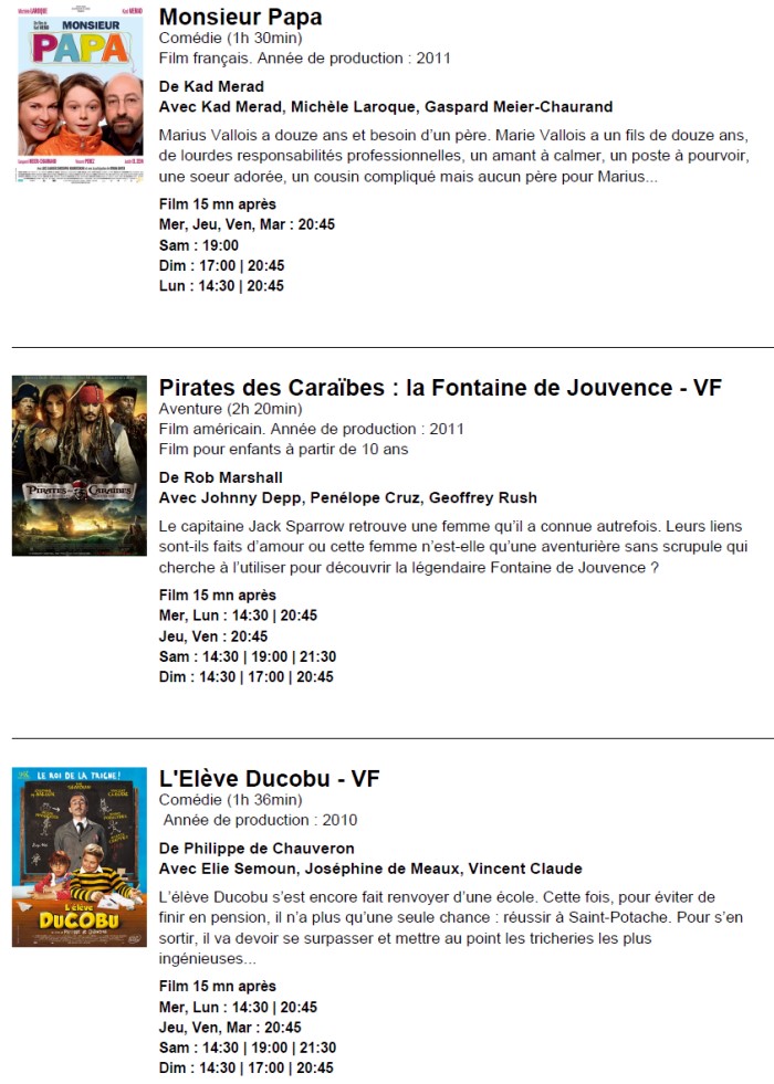 A l'affiche, cette semaine (du 22 au 28 juin 2011)