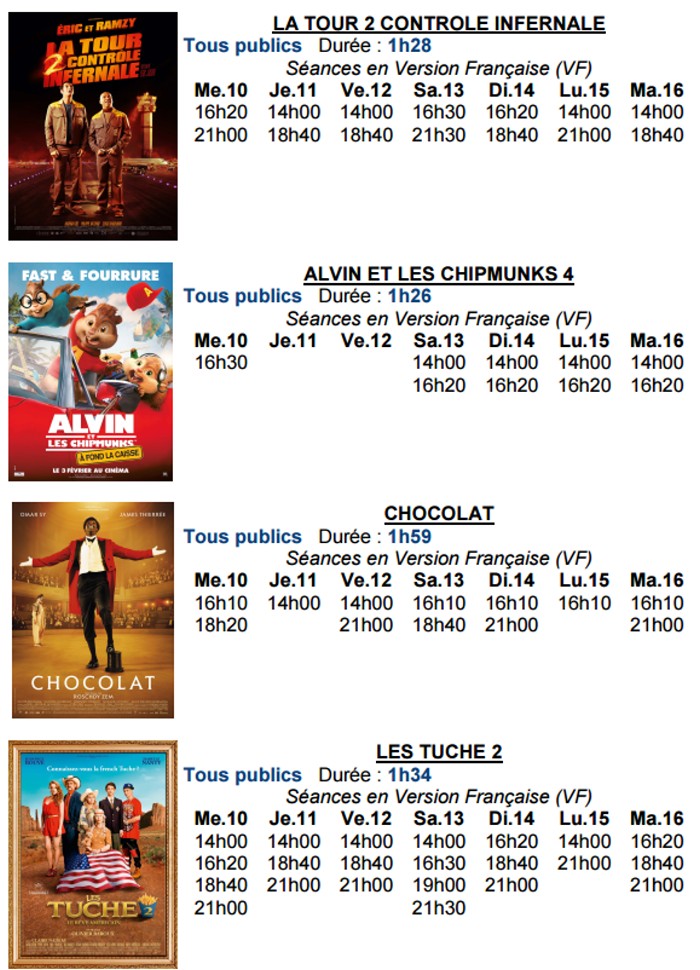 A l'affiche, cette semaine (du 10 au 16 février 2016)