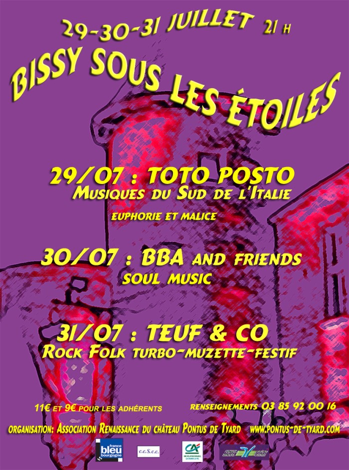 L’association « Renaissance du château Pontus de Tyard » organise le festival « Bissy sous les étoiles » à Bissy sur Fley les 29,30 et 31 juillet