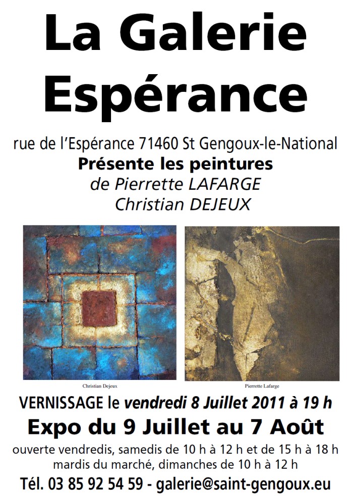 Présente les peintures de Pierrette Lafarge et de Christian Dejeux du 9 juillet au 7 août 2011