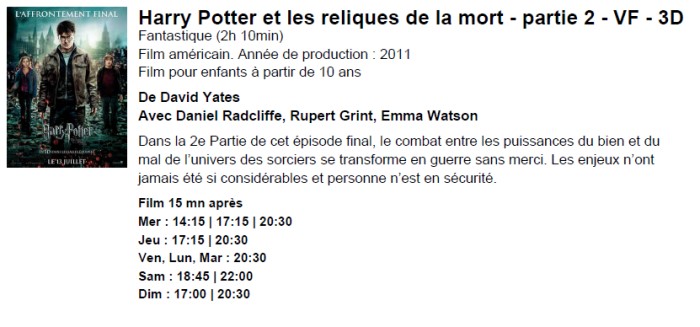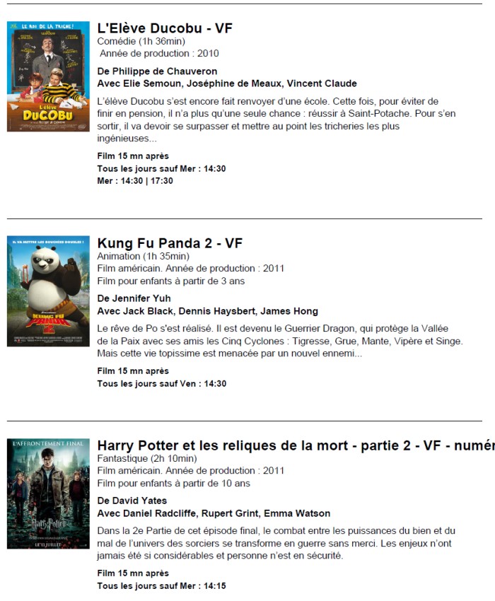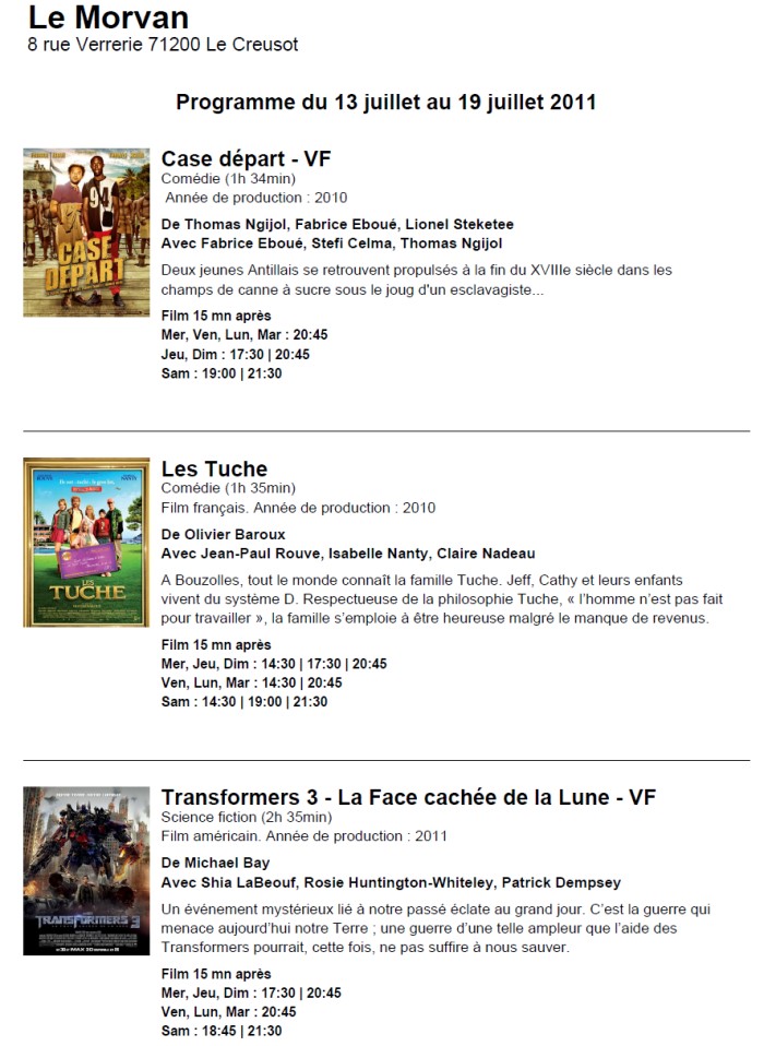 A l'affiche, cette semaine (du 13 juillet au 19 juillet 2011)