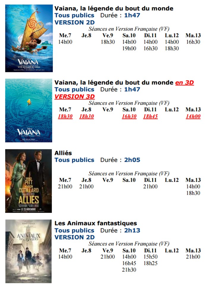 A l'affiche, cette semaine (du 7 au 13 décembre 2016)
