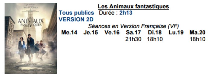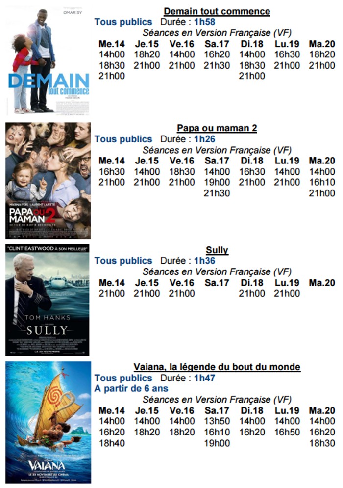 A l'affiche, cette semaine (du 14 au 20 décembre 2016)