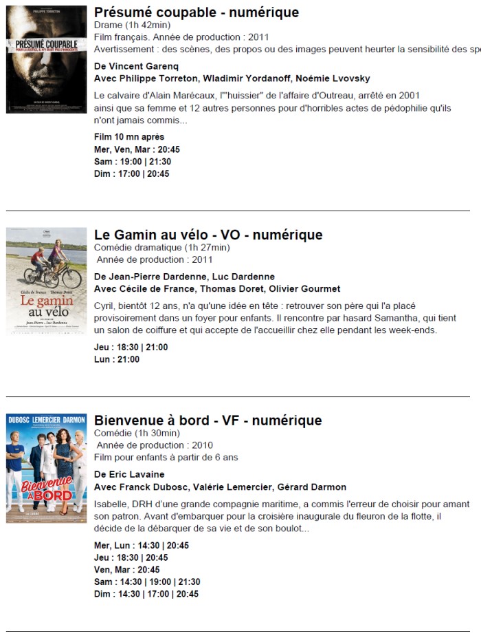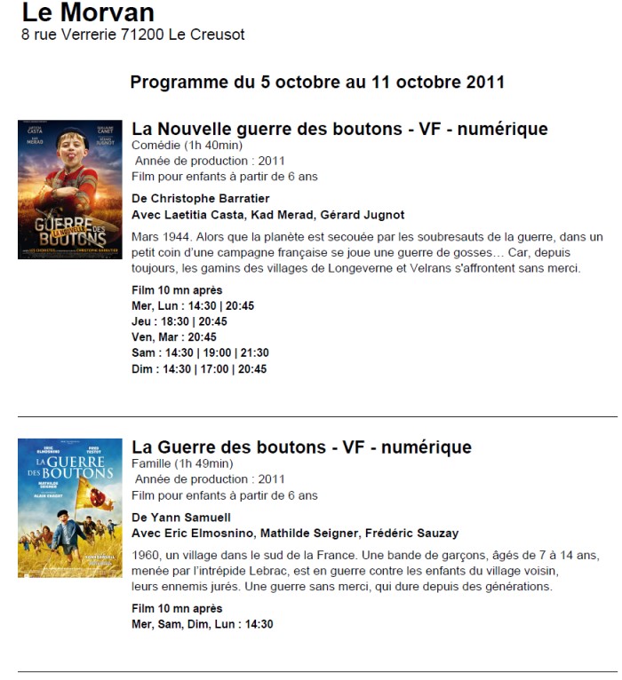 A l'affiche, cette semaine (du 5 au 11 octobre 2011)