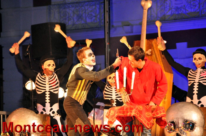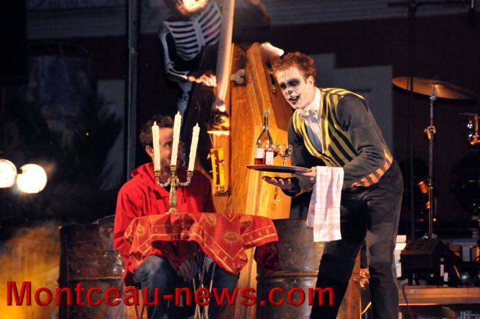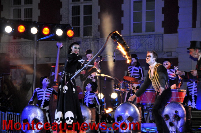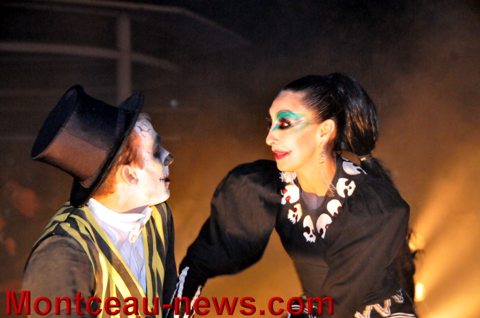 Au rendez vous des morts vivants joyeux pourrait être le titre du spectacle qu’ils avaient déterré tout spécialement, ce vendredi soir, pour les centaines d’inconscients ayant répondu à l’appel des ténèbres ! Des ténèbres qui, de insondables, prenaient subitement des couleurs : celles de l’enfer : rougeoyantes et enfumées !