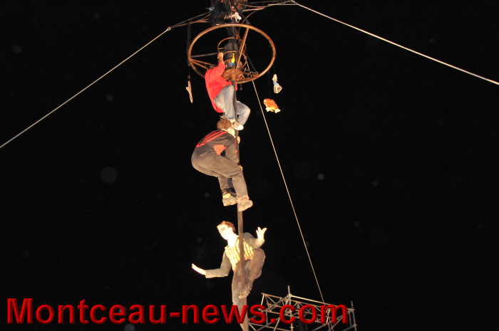 Des gargouilles pendues tout là haut, au bout d’un fil ténu comme la vie. Semblant toujours prêt à rompre sous les coups de boutoir, les tressautements de corps dégingandés cherchant à… s’échapper ? Pa sur ! Peut-être ! Et la musique est là, omniprésente, comme les rythmes. Envoutante comme un chant de sirène, elle vous entraine au fond. Au fond de vous, au plus profond…