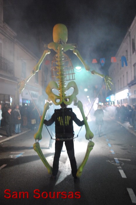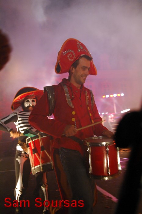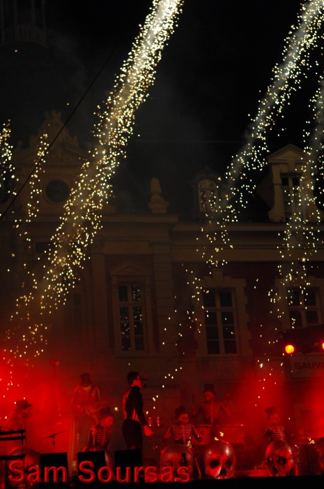 Dès le départ, Place du Capitole, la Compagnie Transe-express nous plonge immédiatement dans le feu de l’action, l’Ultime et Grand Voyage. Un claquement de doigts osseux suivit de roulements de tambours et toutes nos craintes lugubres disparaissent, ou plutôt, s’évanouissent. Pour la plupart, c’est un nouveau réveil, la résurrection de l’âme d’enfant endormie au plus profond de chacun.