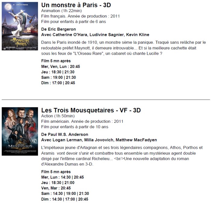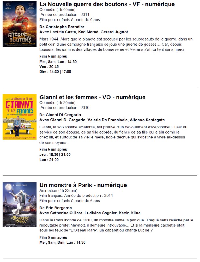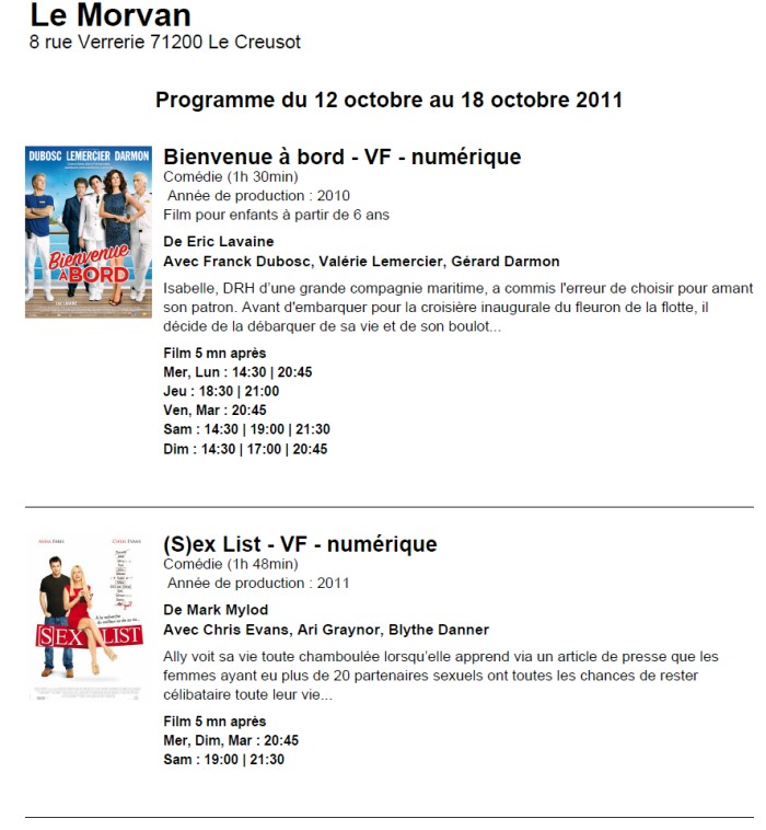 A l'affiche, cette semaine (du 12 au 18 octobre 2011)