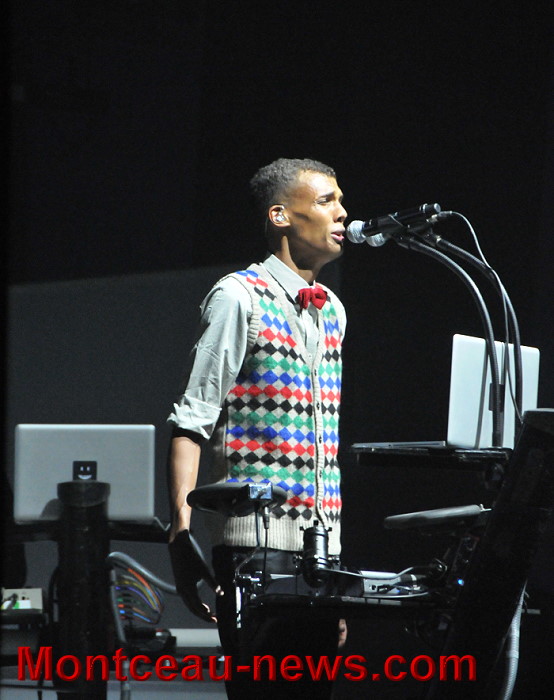 Electro ! Le mot est lâché ! Electrochoc avec Stromae. Egal à lui-même : le doigt levé. Bienvenue chez lui ! Les mots dansent, le public s’agite, prend le train en marche, est prêt à le suivre jusqu’au bout, jusqu’à la mort… La rythmique, omniprésente, vous capte, capture, emprisonne mais pour mieux vous libérer, vous déchainer… Là encore pas un public homogène, dans le sens où tout le monde ne connaissait pas encore le « petit belge » qui monte. Qui ne savait pas qu’il allait être inivté à plonger dans une tourmente délicieuse et fulgurante à la fois. Là encore : une belle découverte !…