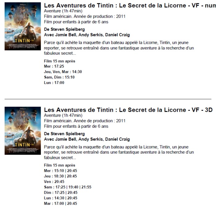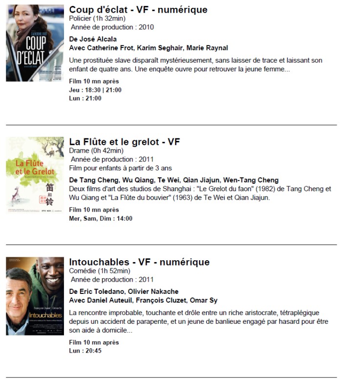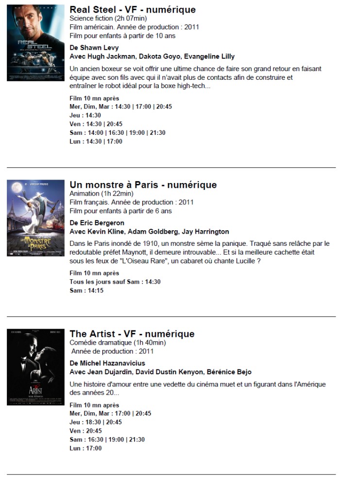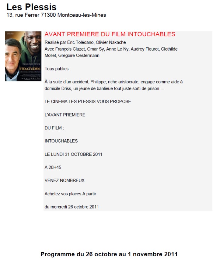 A l'affiche, cette semaine (du 26 au 1er novembre 2011)