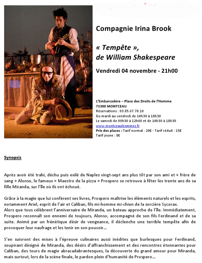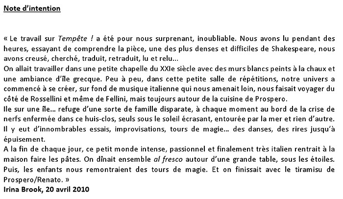 "Tempête de William Shakespeare" (Théâtre) par la compagnie Irina Brook le 4 novembre 2011