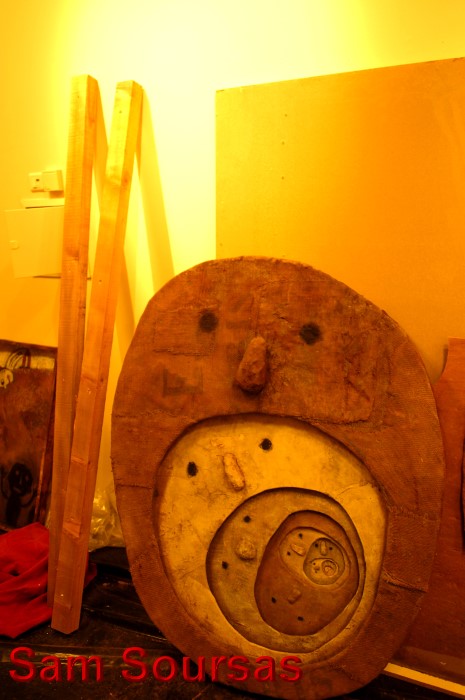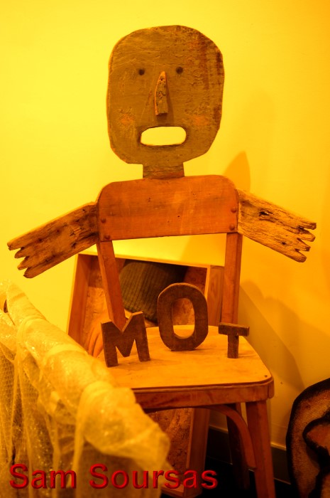 Alliant subtilement des matériaux qui ont vécu, les deux hommes réussissent haut la main à donner corps et âme à leurs créations. Toile de jute, carton, papier-mâché, bois, etc…, leur préférence se porte à l’évidence sur ce qui se dégrade, ce qui vit.