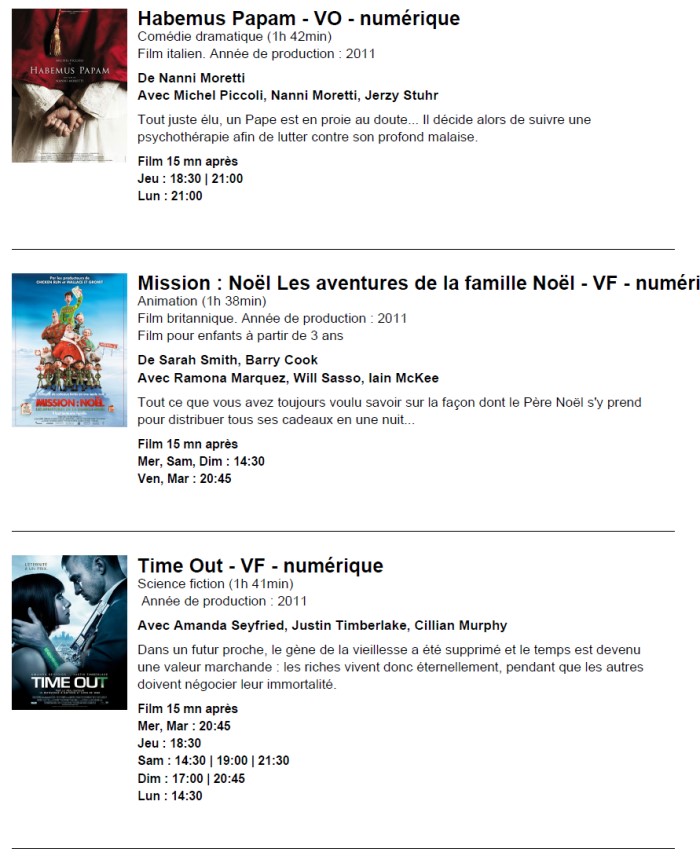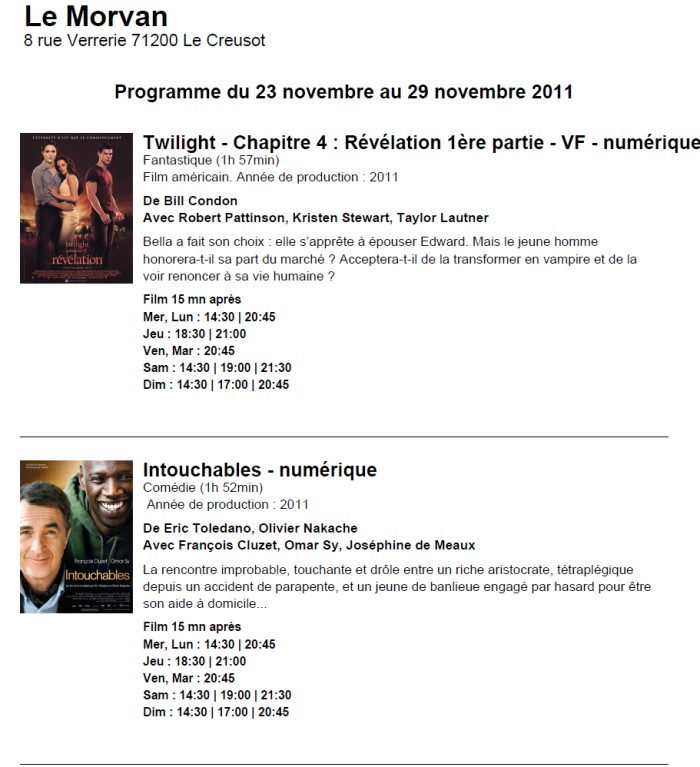 A l'affiche, cette semaine (du 23 au 29 novembre 2011)