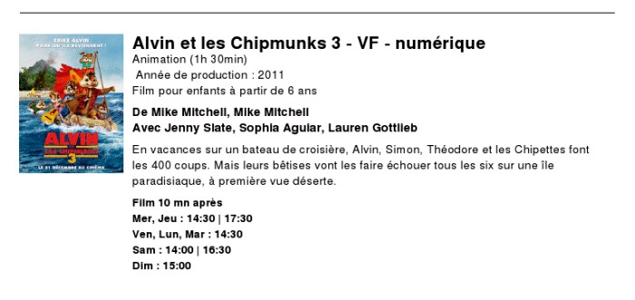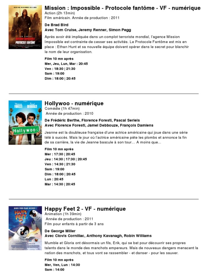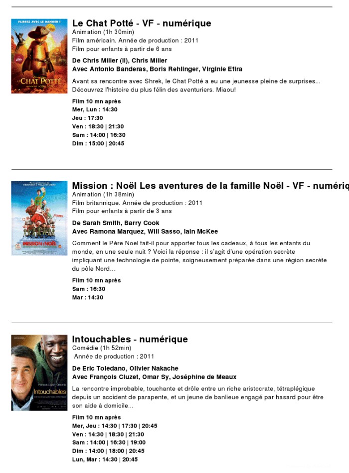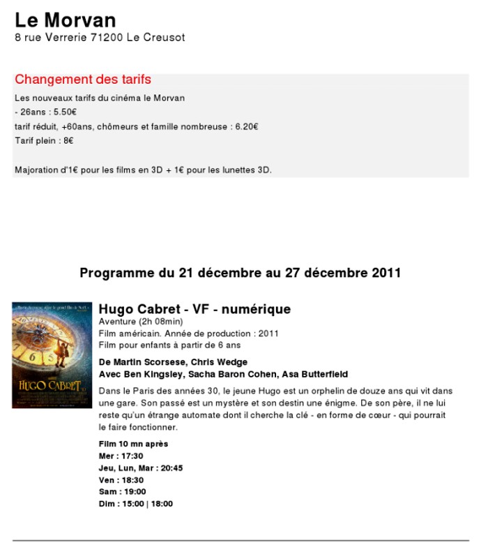 A l'affiche, cette semaine (du 21 au 27 décembre 2011)