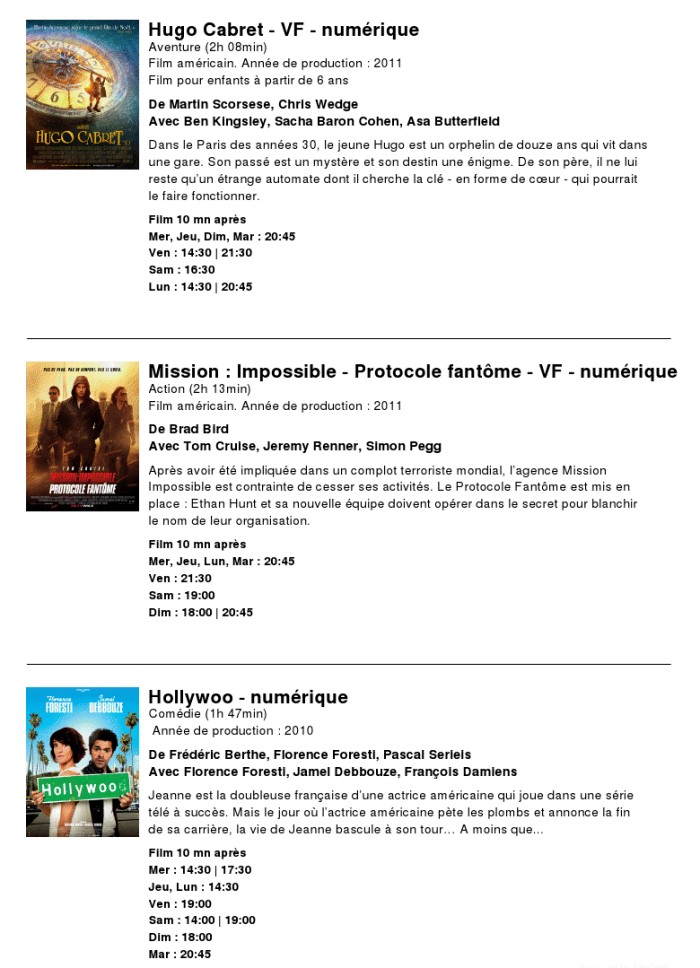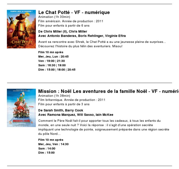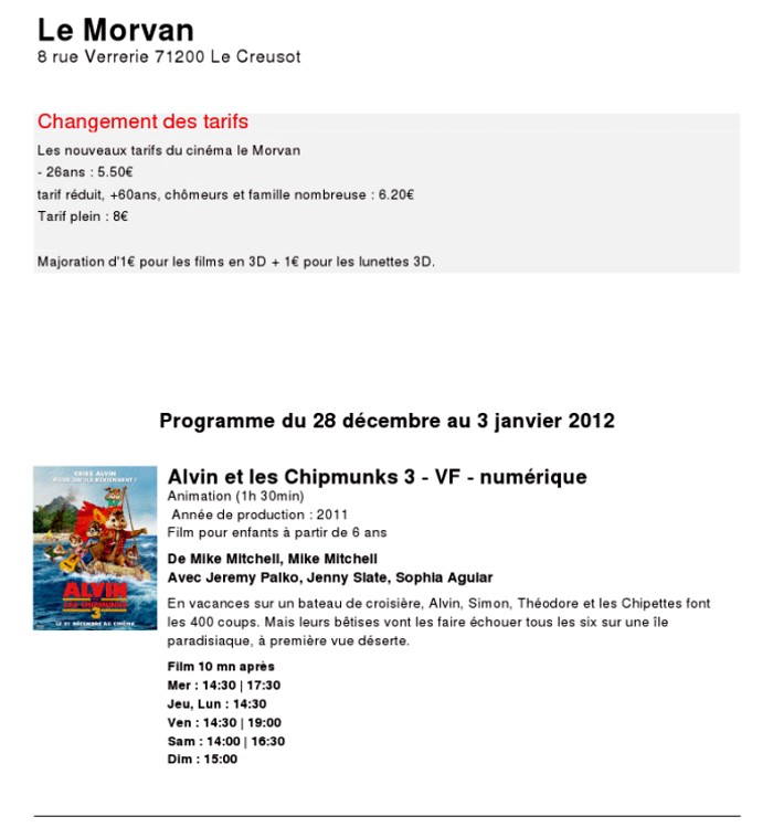 A l'affiche, cette semaine (du 28 décembre au 3 janvier 2011)