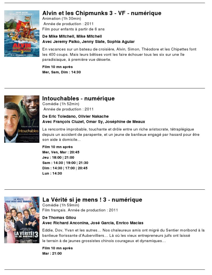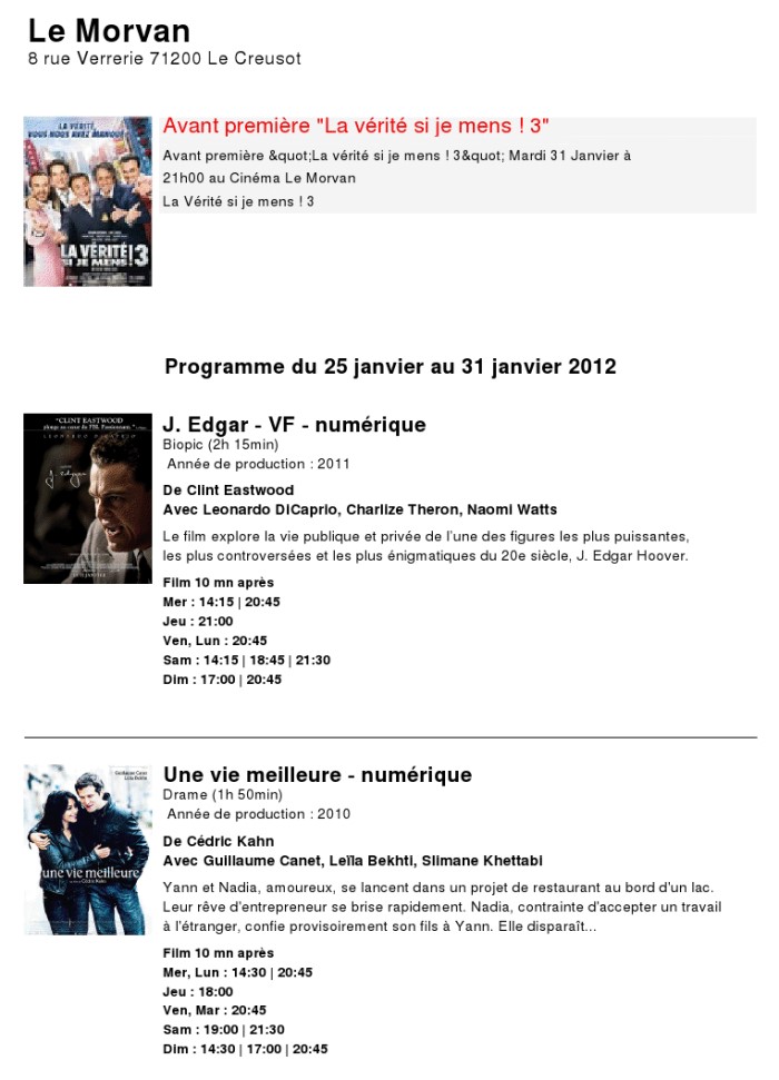 A l'affiche, cette semaine (du 25 au 31 janvier 2012)