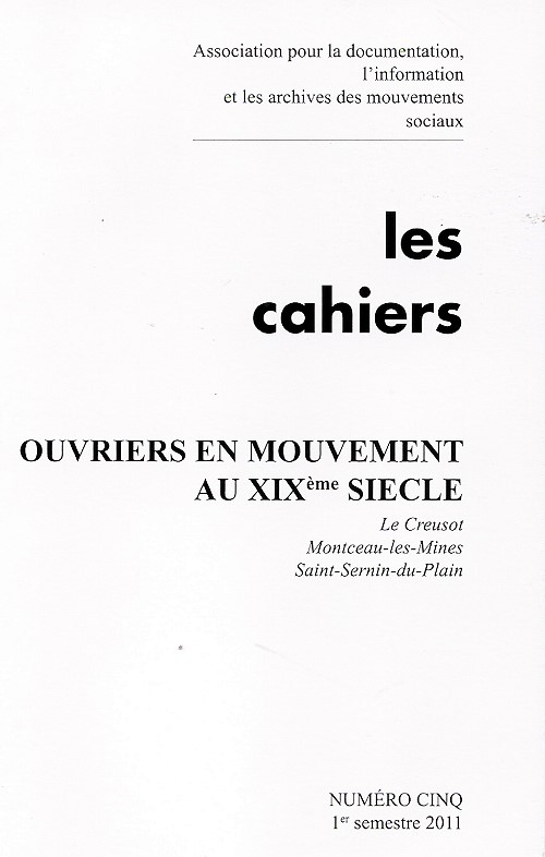 Ce cahier d’ADIAMOS n° 5 s’intitule « Ouvriers en mouvement ou XIXème siècle. Le Creusot, Montceau-les-Mines et Saint-Sernin-du-Plain », comporte un article de P. Lévêque (« les ouvriers des Houillères et de la métallurgie en Saône-et-Loire au milieu du XIXème ») et un article de Jean Philippon (maître de conférences honoraire de l’Université de Nice, domicilié à St Sernin) sur « les mineurs de Mazenay et la politique »