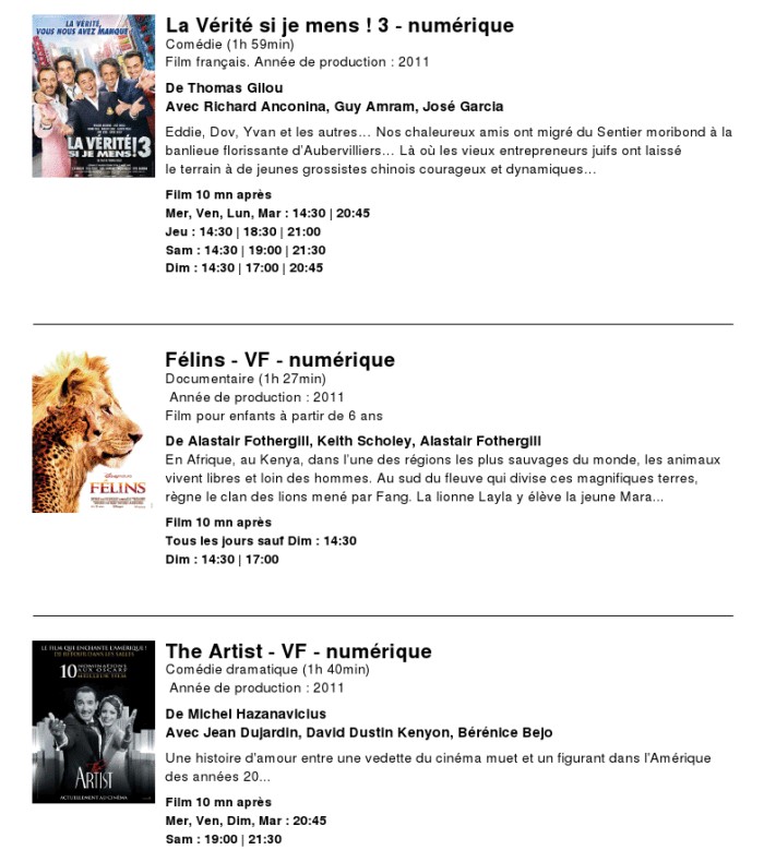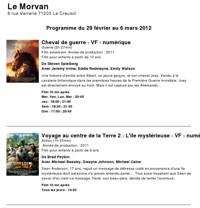 A l'affiche, cette semaine (du 29 février au 6 mars 2012)