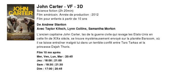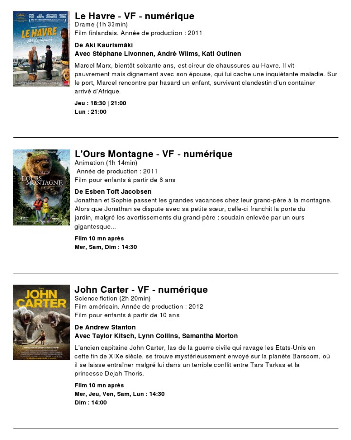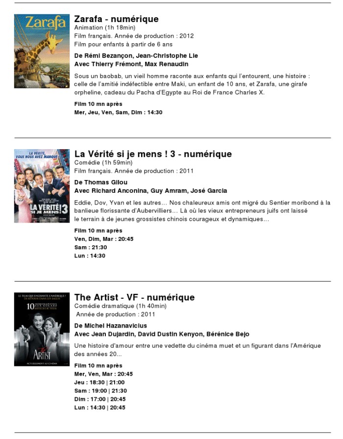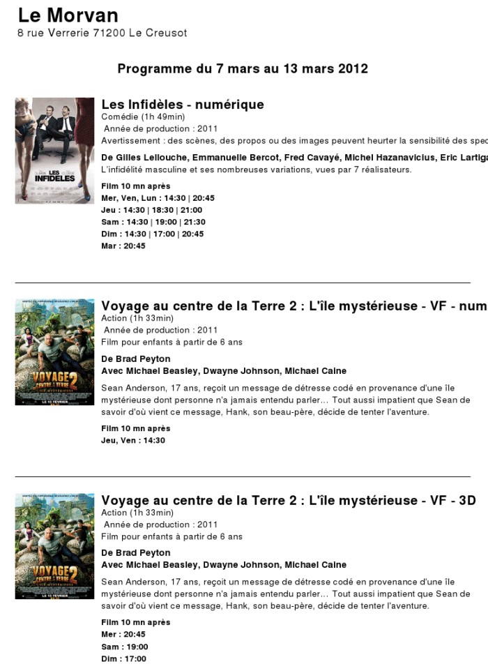 A l'affiche, cette semaine (du 7 au 13 mars 2012)