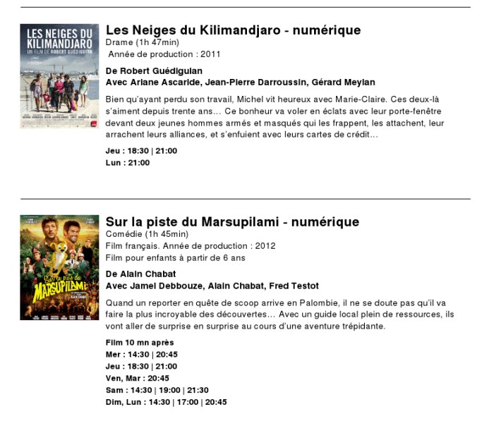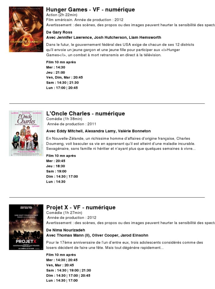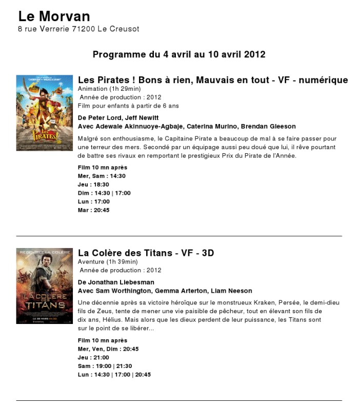 A l'affiche, cette semaine (du 4 au 10 avril 2012)