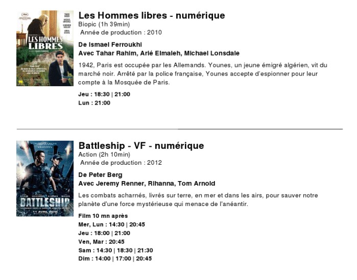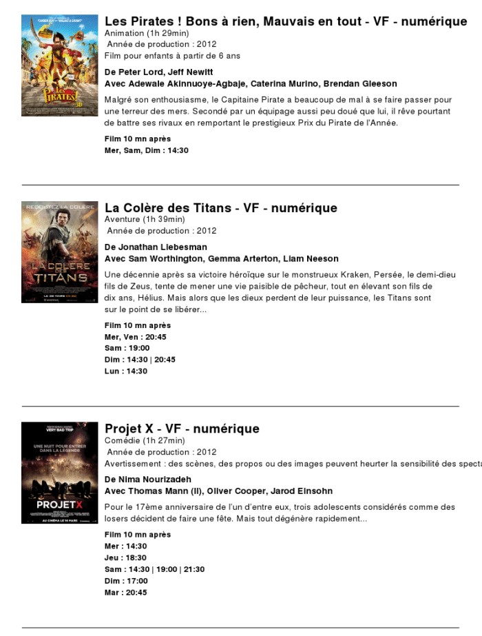 A l'affiche, cette semaine (du 11 au 17 avril 2012)