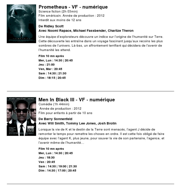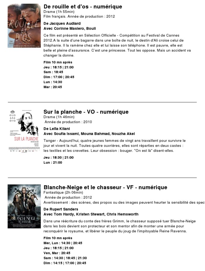 A l'affiche, cette semaine (du 13 au 19 juin 2012)